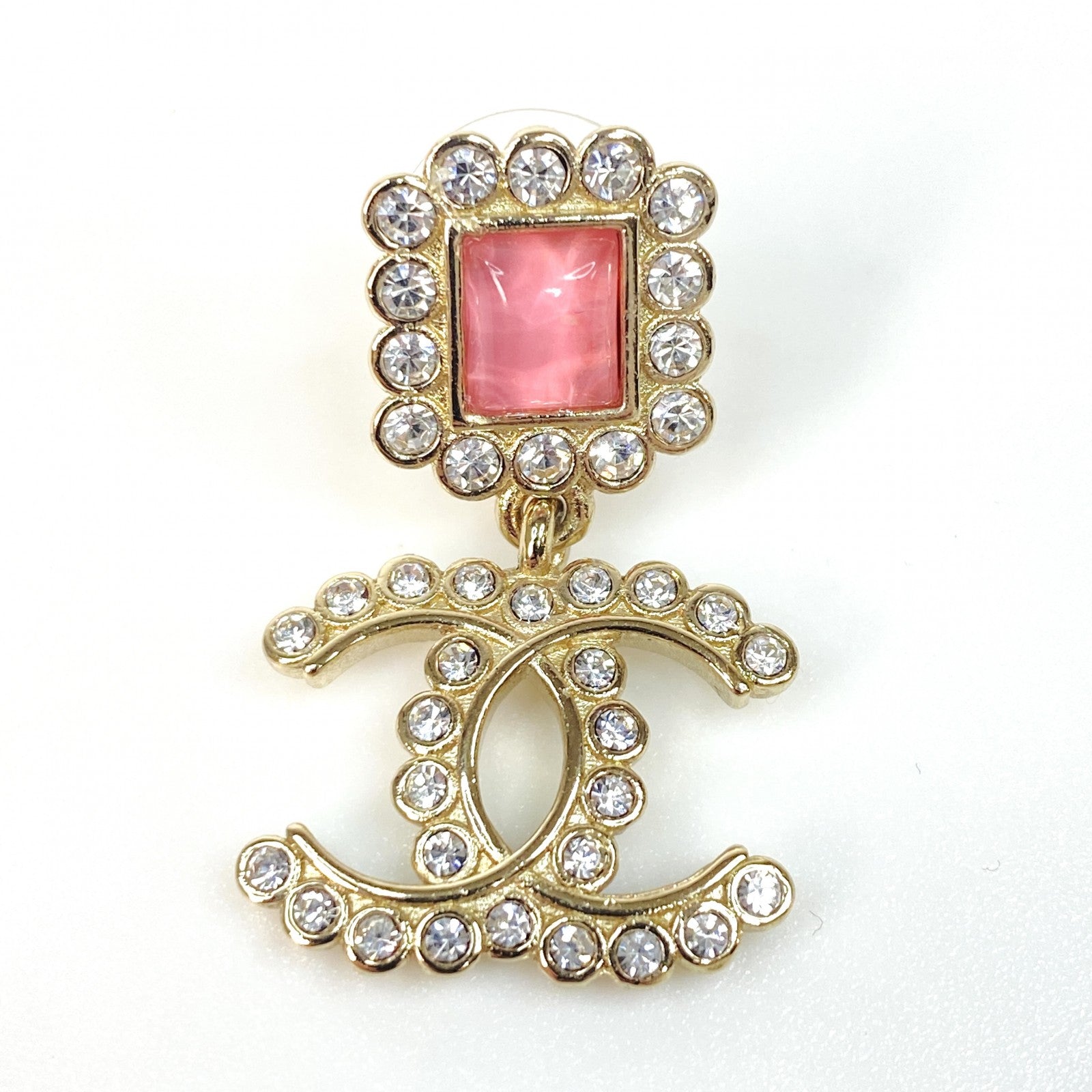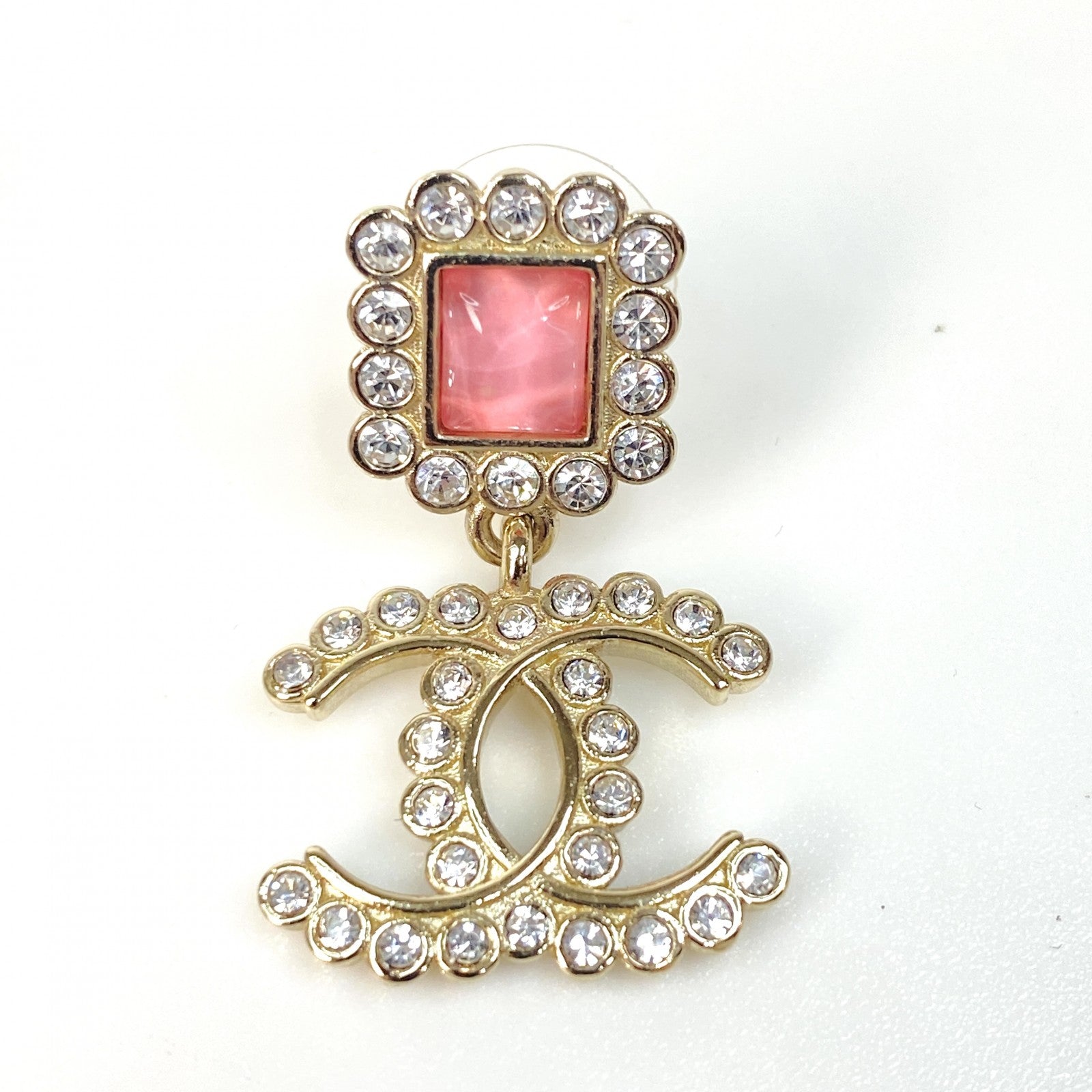 美品 シャネル CHANEL レディース ピアス A21K ラインストーン ピンク ゴールド【中古】