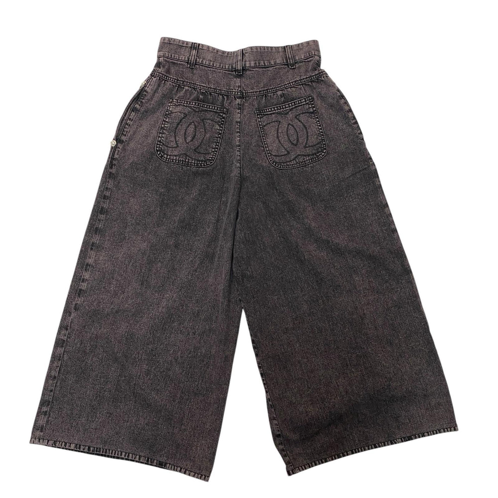 美品 シャネル CHANEL デニム ワイドパンツ 40 ココマーク P73404 レディース