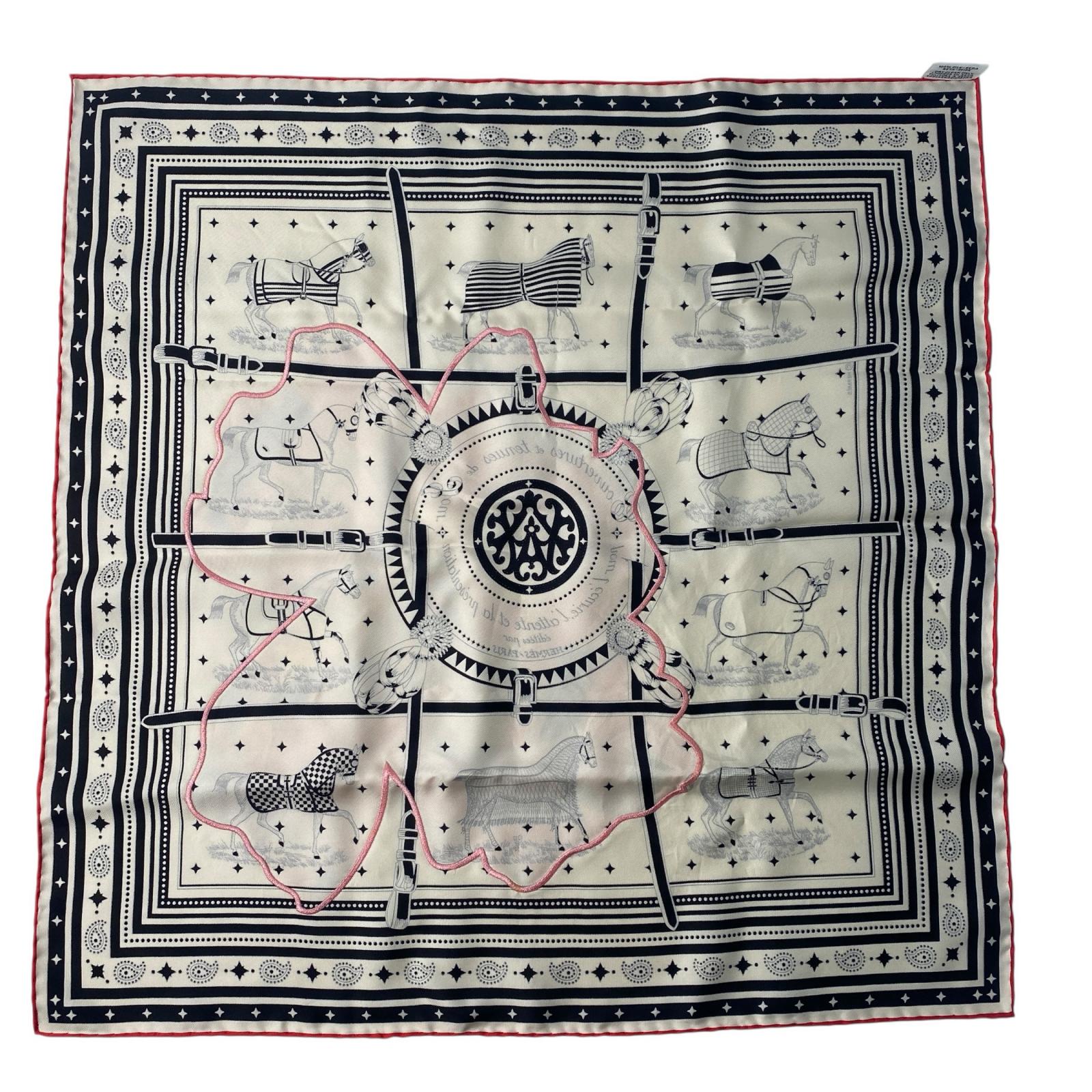 美品 エルメス HERMES レディース カレ55 馬着 京都マーブル フラワー シルク