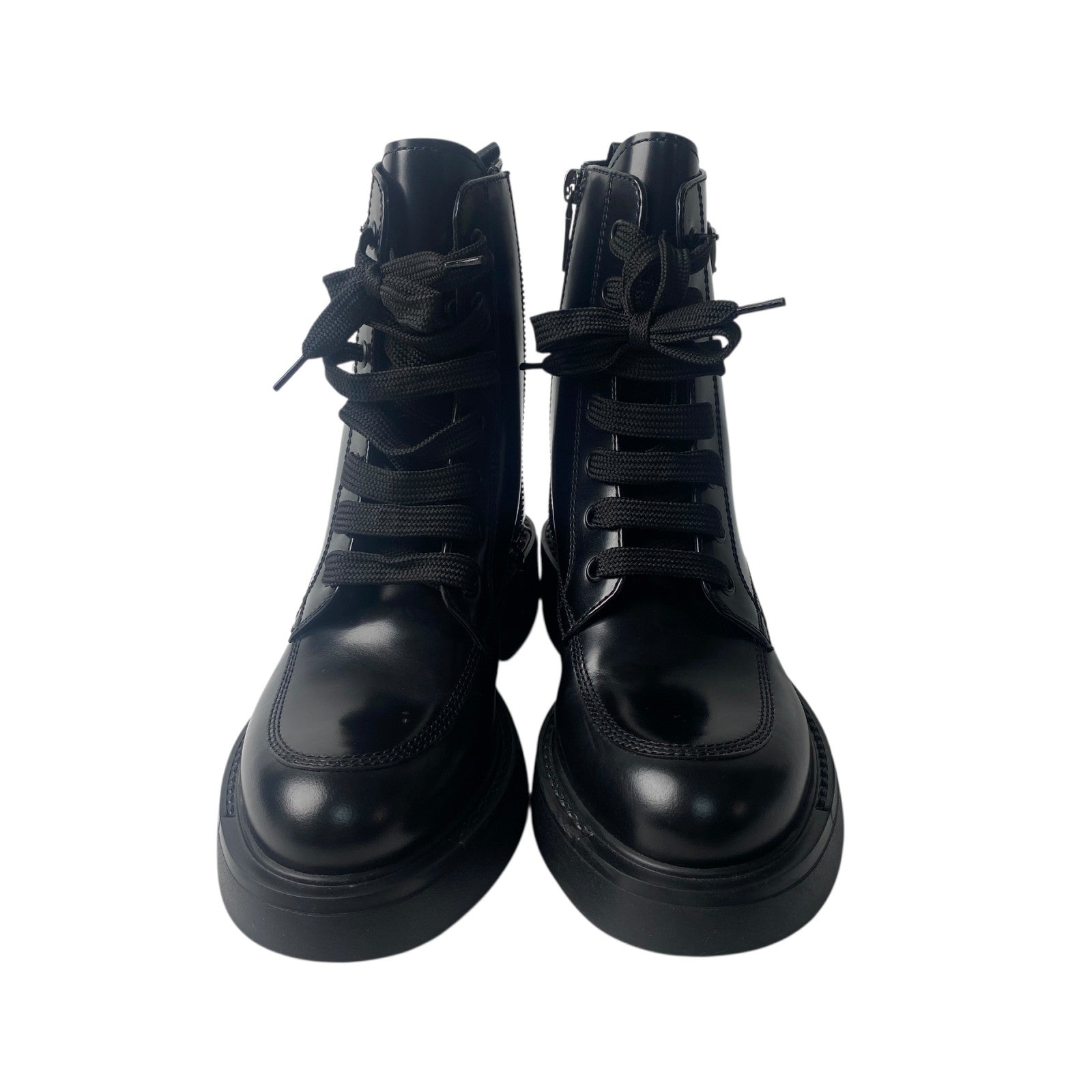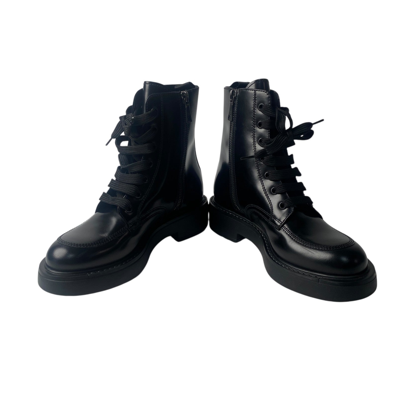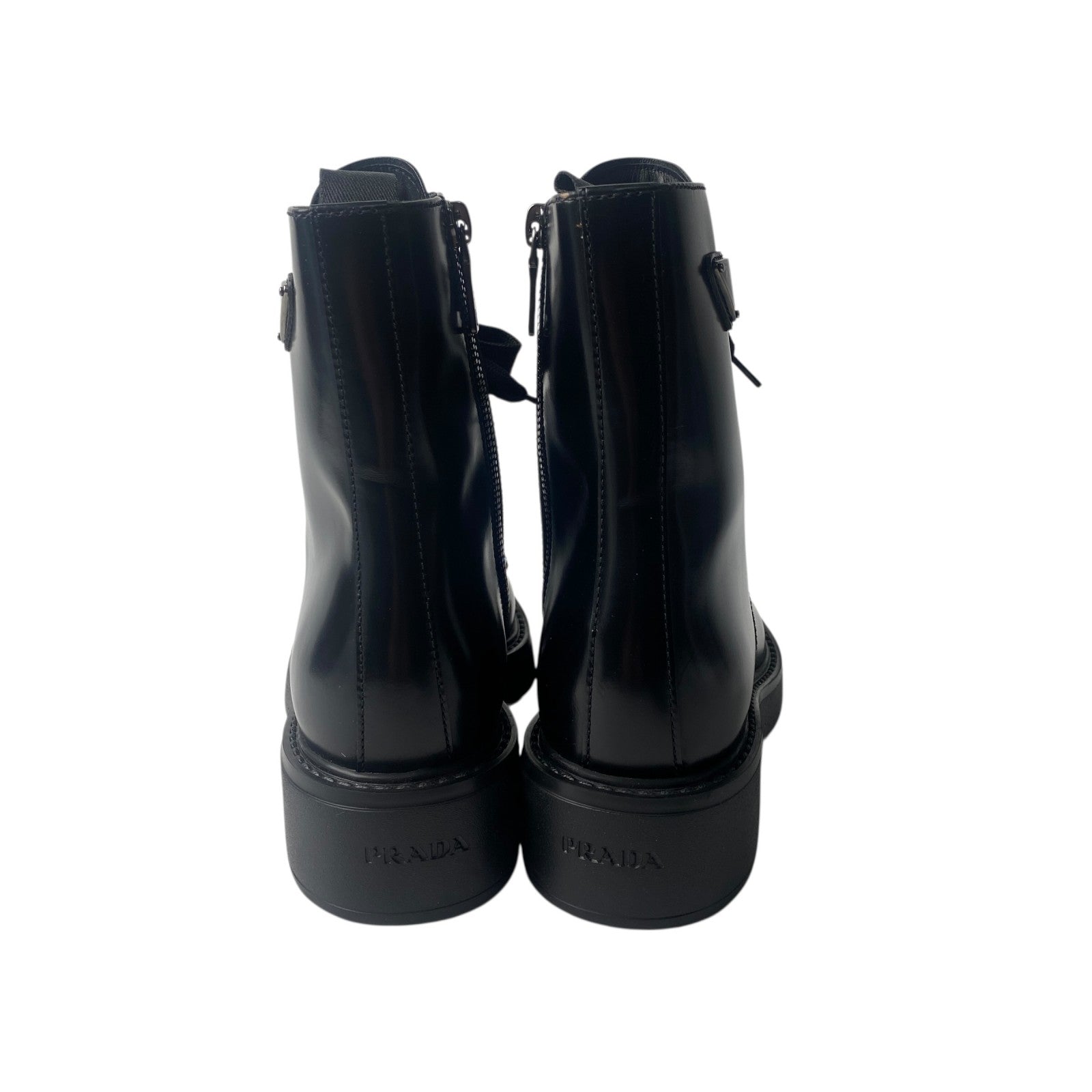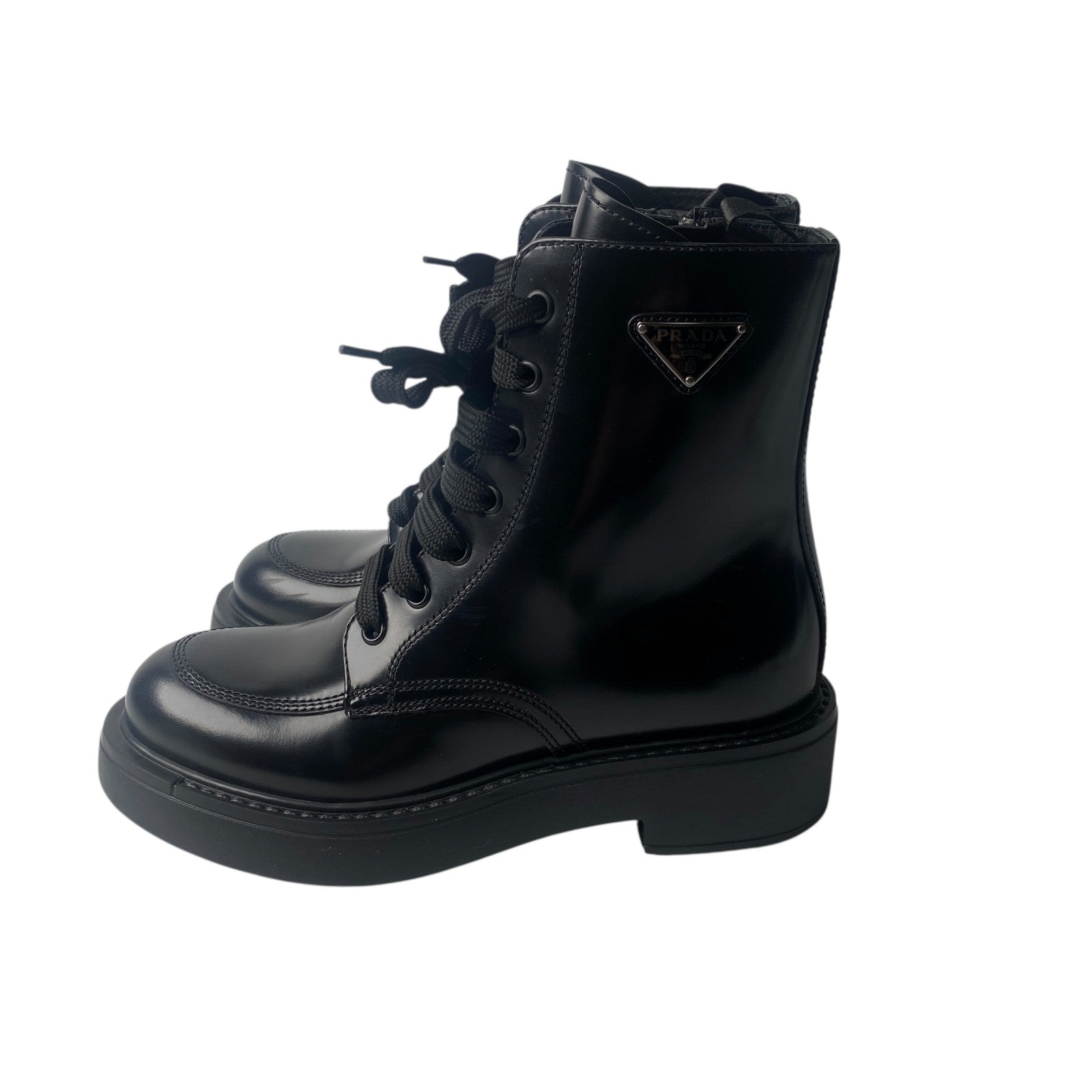 美品 プラダ PRADA レディース レースアップブーツ 34 1/2 三角ロゴプレート